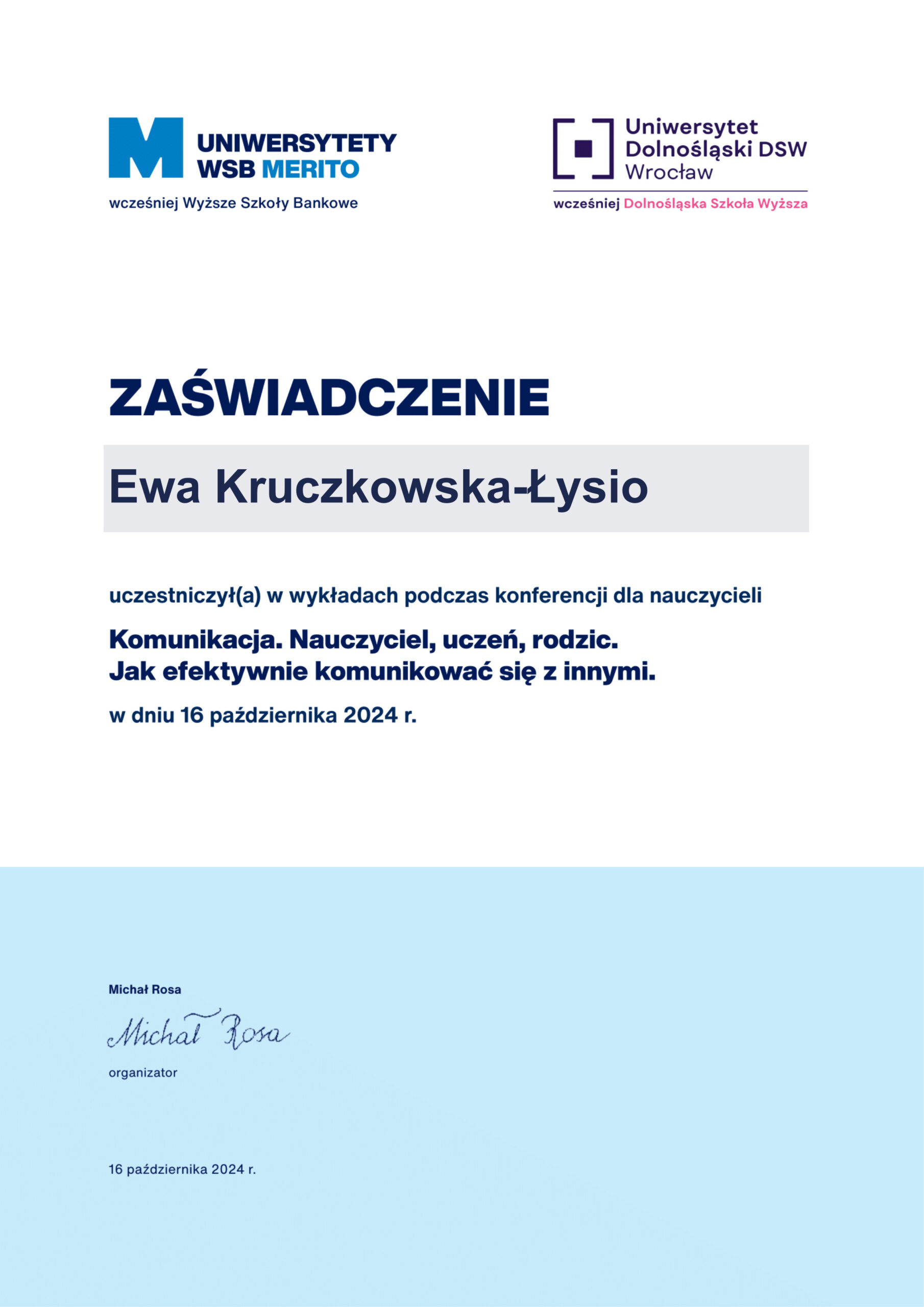 Potwierdzenie moich umiejętności
